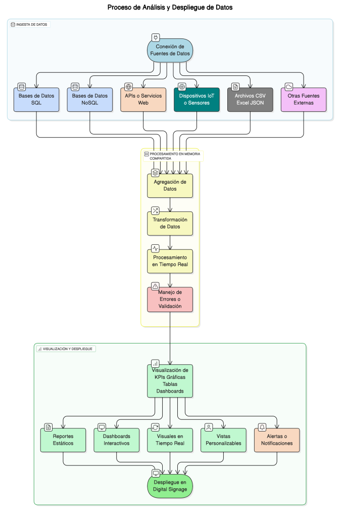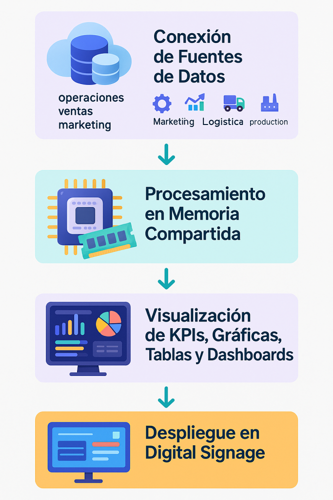 Plataforma todo-en-uno: analítica visual + Digital Signage para operaciones, ventas, logística, marketing y más